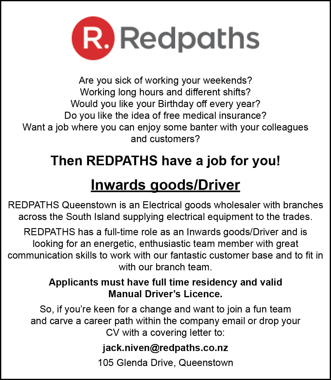 R Redpath Ltd is well established as one of the largest and leading independent South Island electrical wholesalers. With a long-standing reputation in the electrical industry (over 75 years) Redpaths believes we not only meet but exceed the expectations of our customers by building relationships and tailoring solutions for their needs.