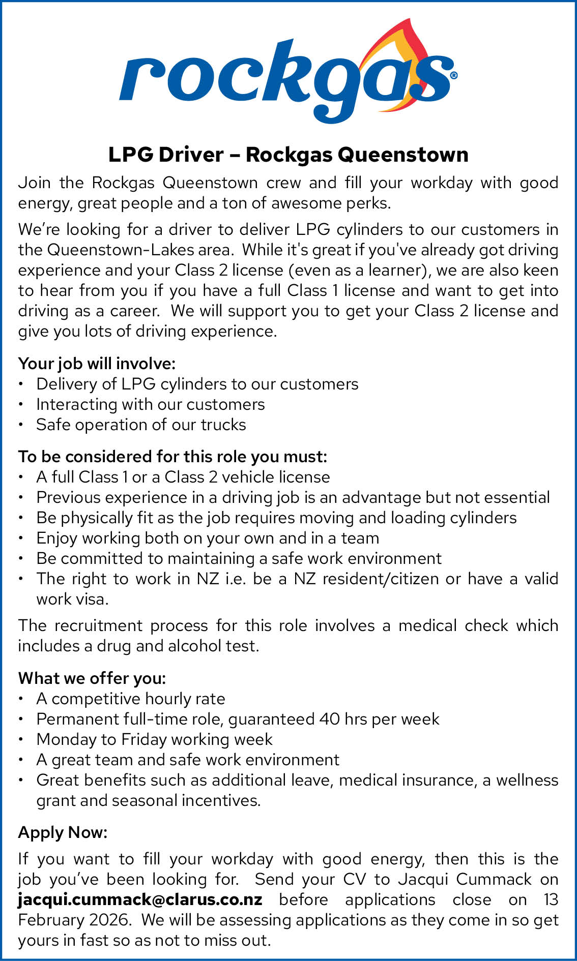 Join the Rockgas Queenstown crew and fill your workday with good energy, great people and a ton of awesome perks.